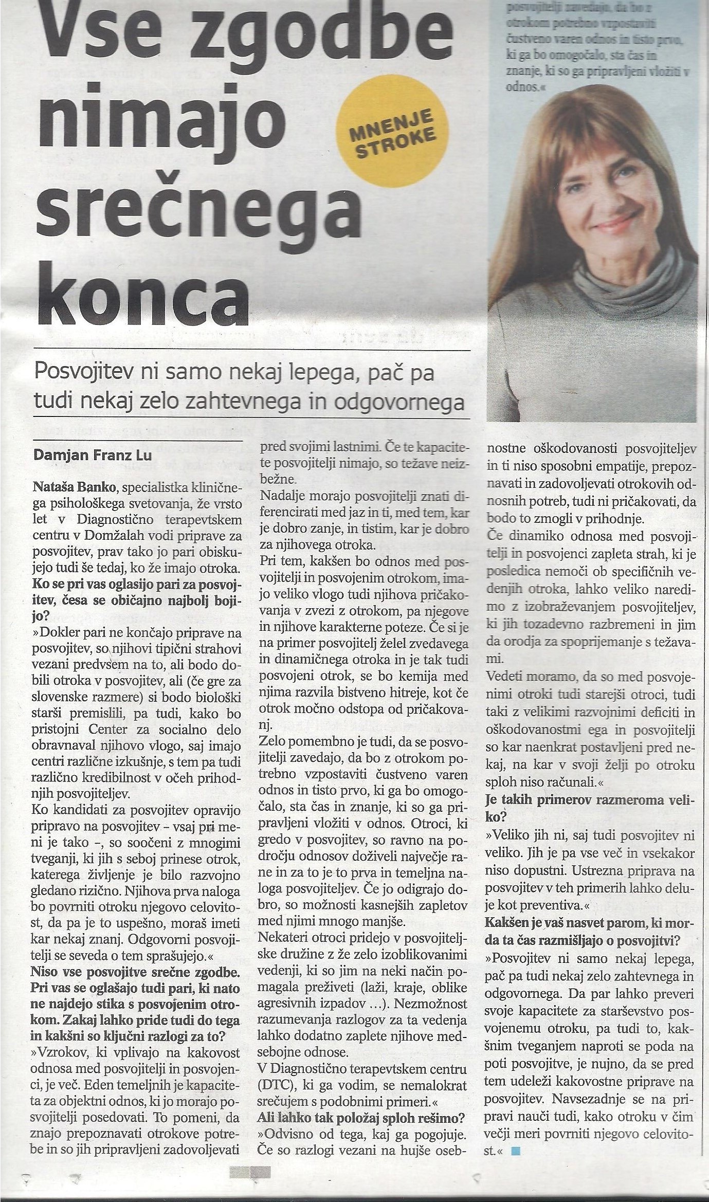 Preberite si članek o posvojitvah, objavljenem v Nedeljskem dnevniku.